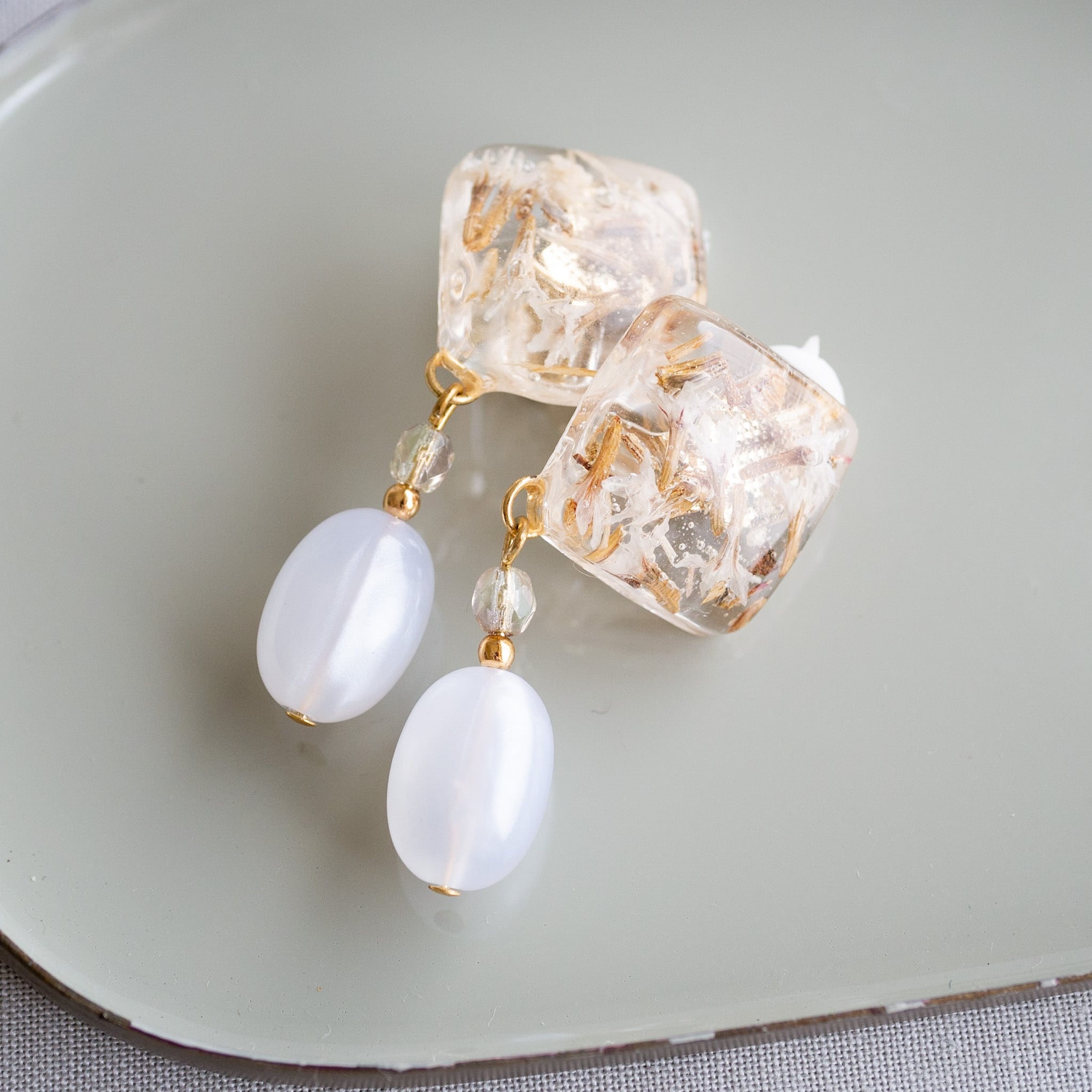 パールのようなシルエットのビーズを組み合わせた小ぶりのイヤリング。