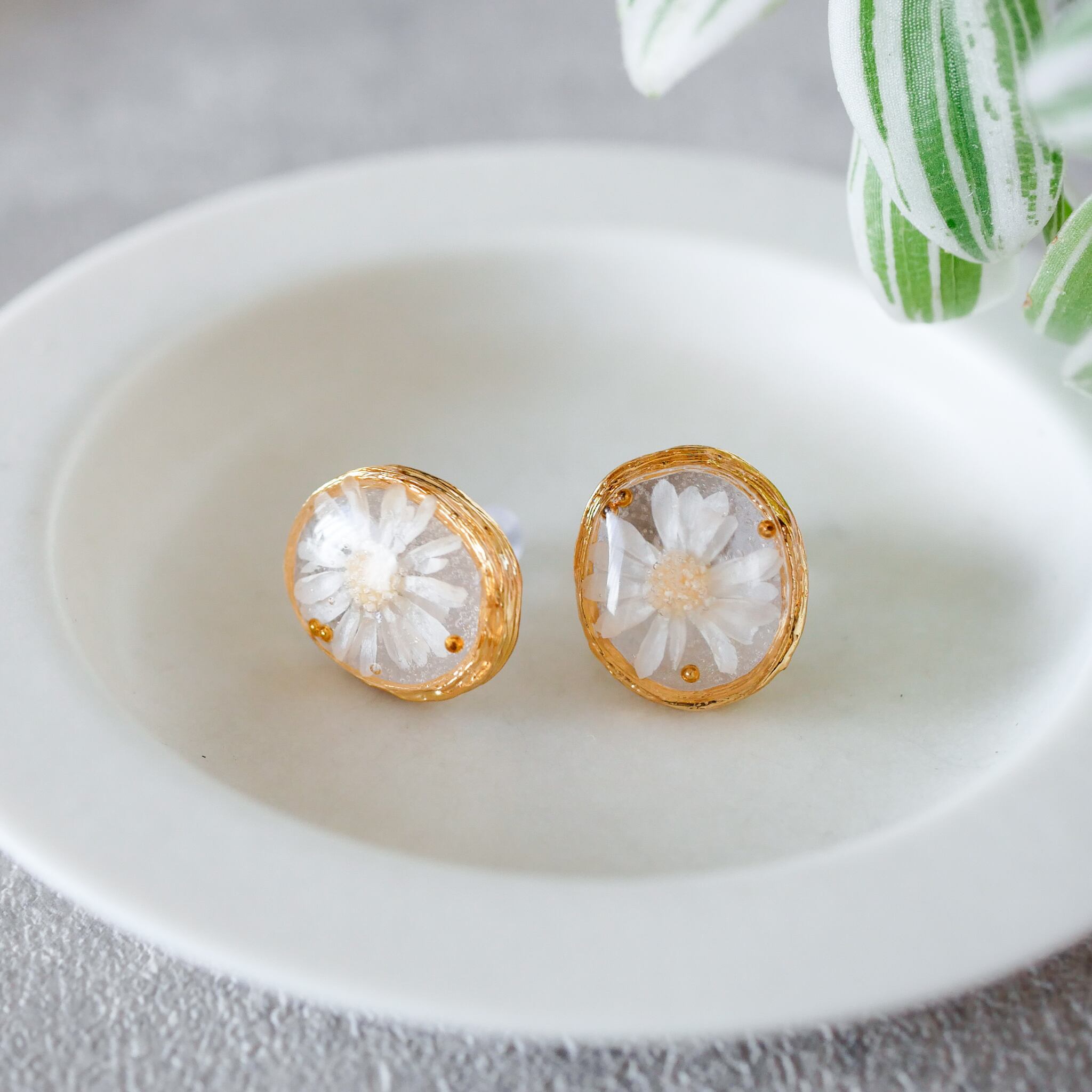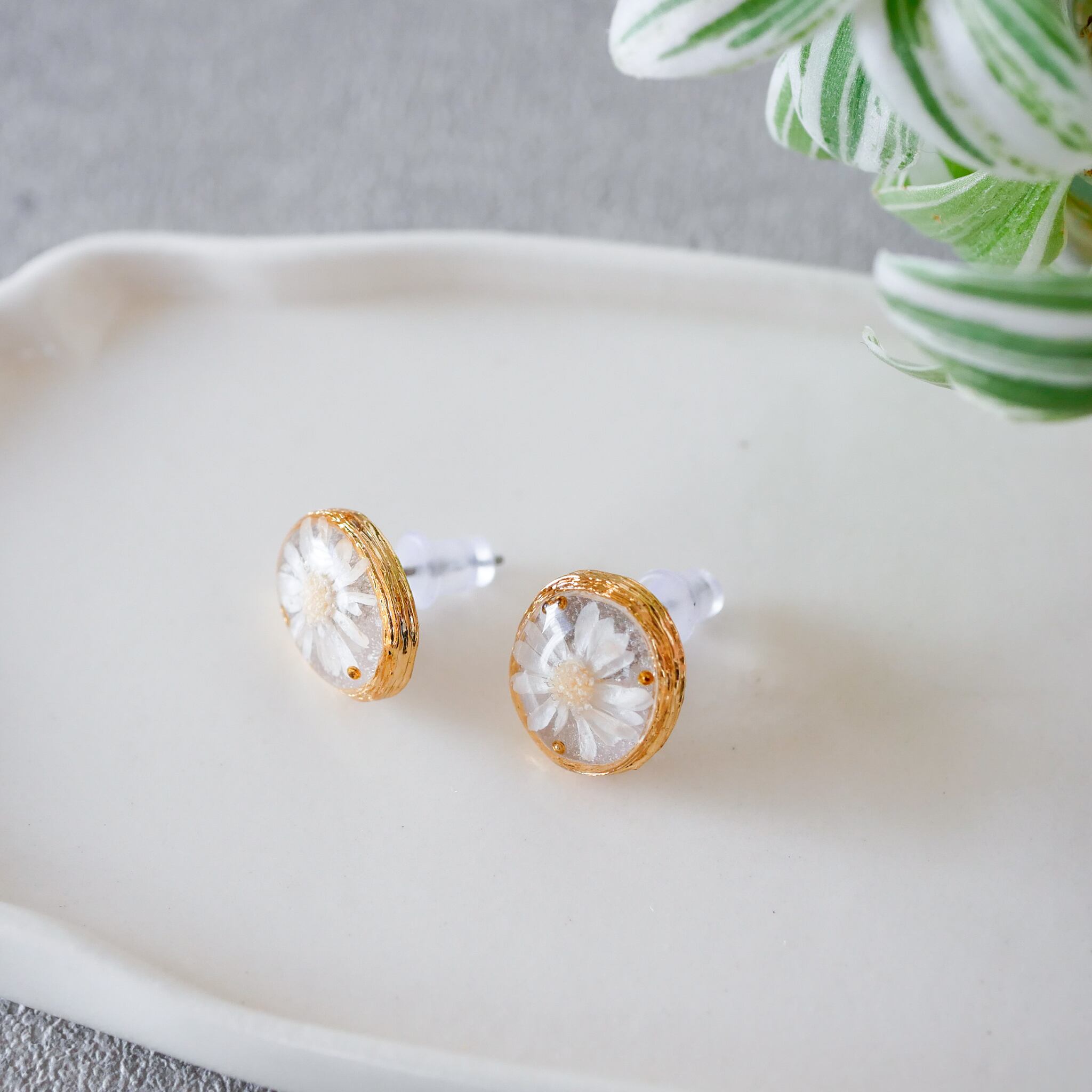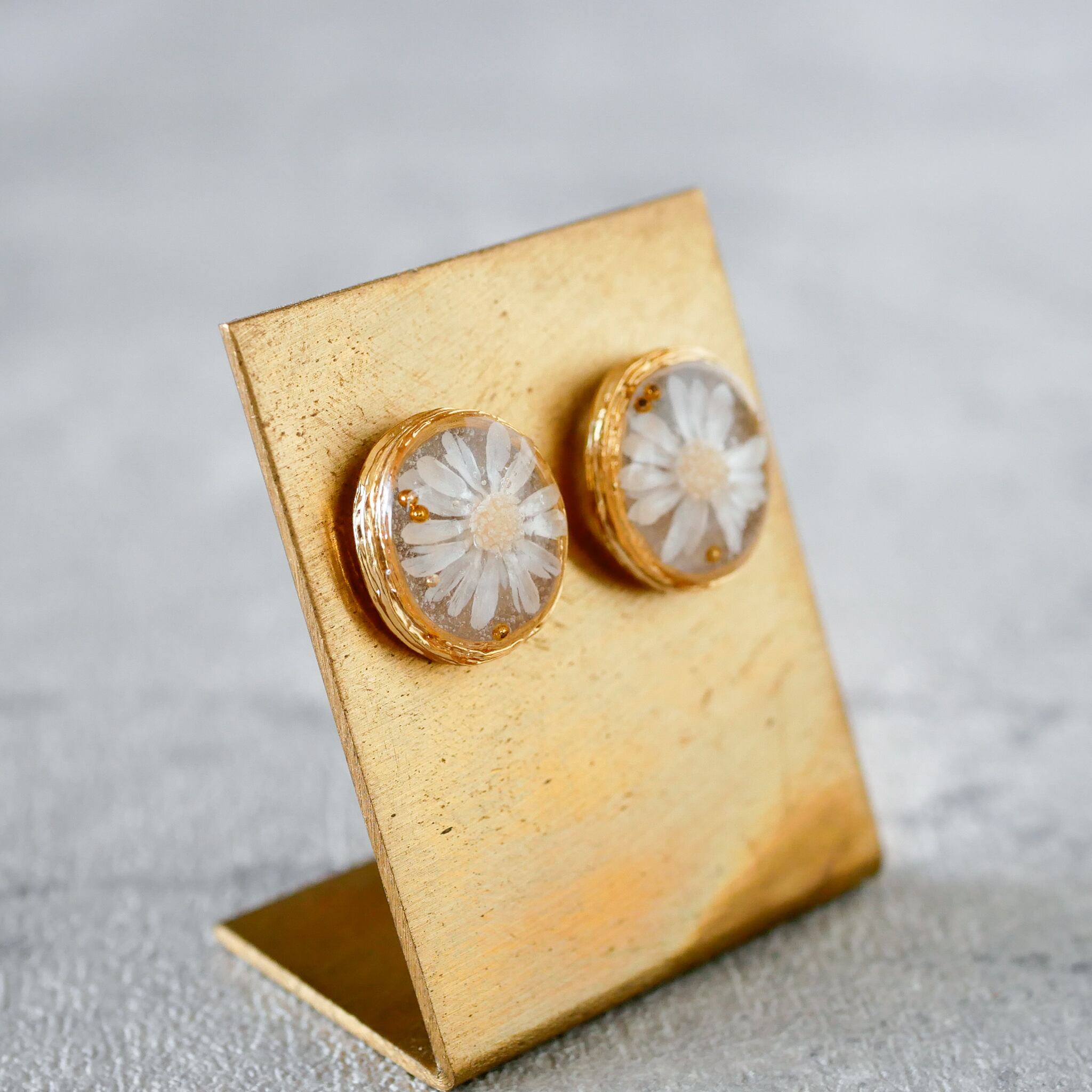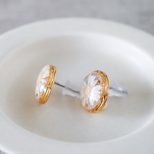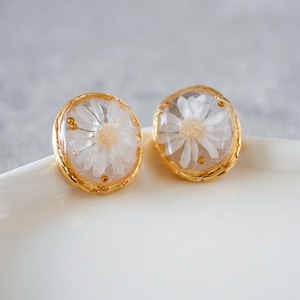 ホワイトカラーのスターフラワー(プリザーブドフラワー)を使用した、シンプルでかわいいピアス。