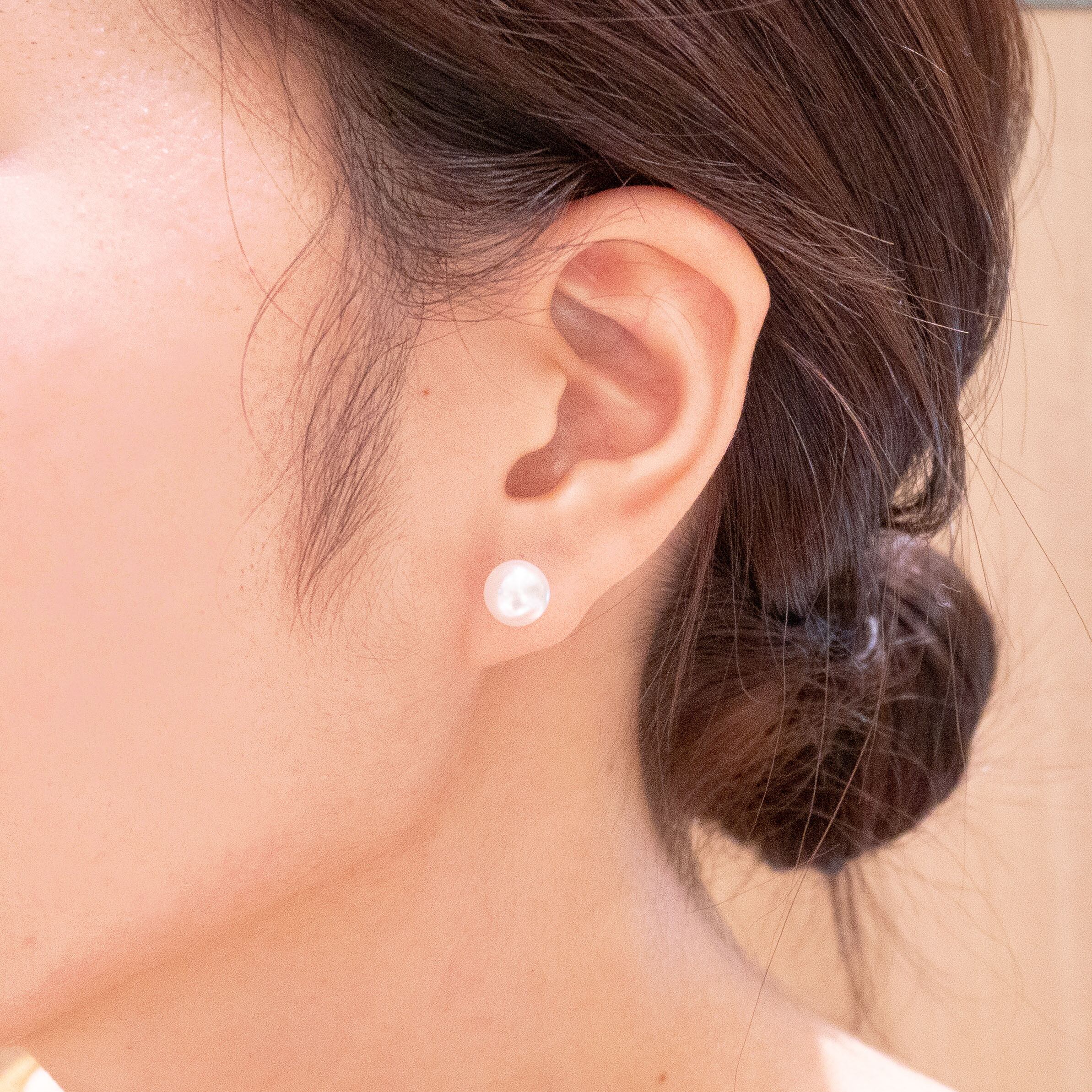 ピアスのキャッチの部分はパールキャッチになっているので、横から見た時でも無機質な金具が見えず、とてもお洒落。