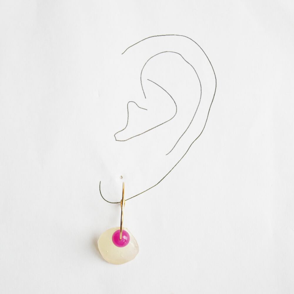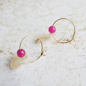 フープピアスのサイズは2センチの小さなタイプで、耳元のさり気ないポイントになります。