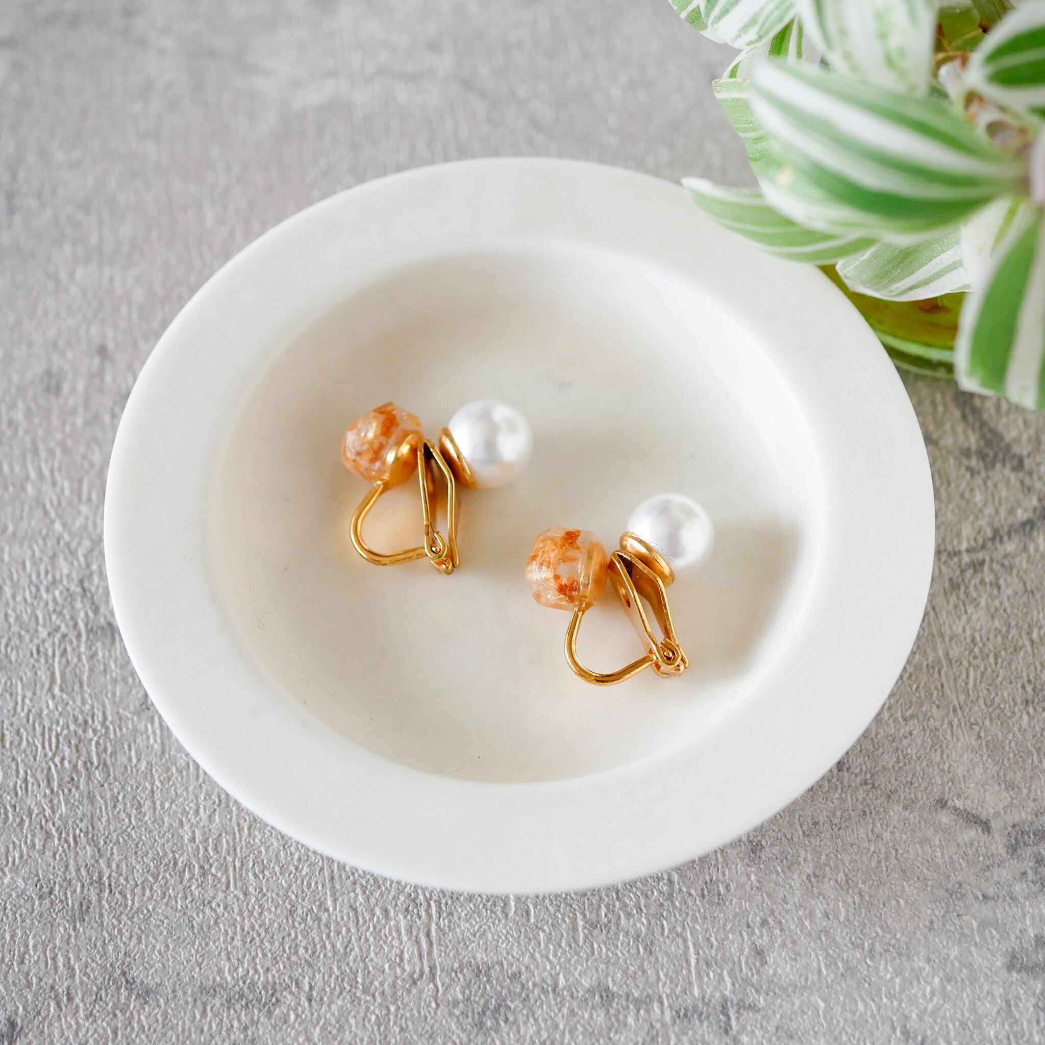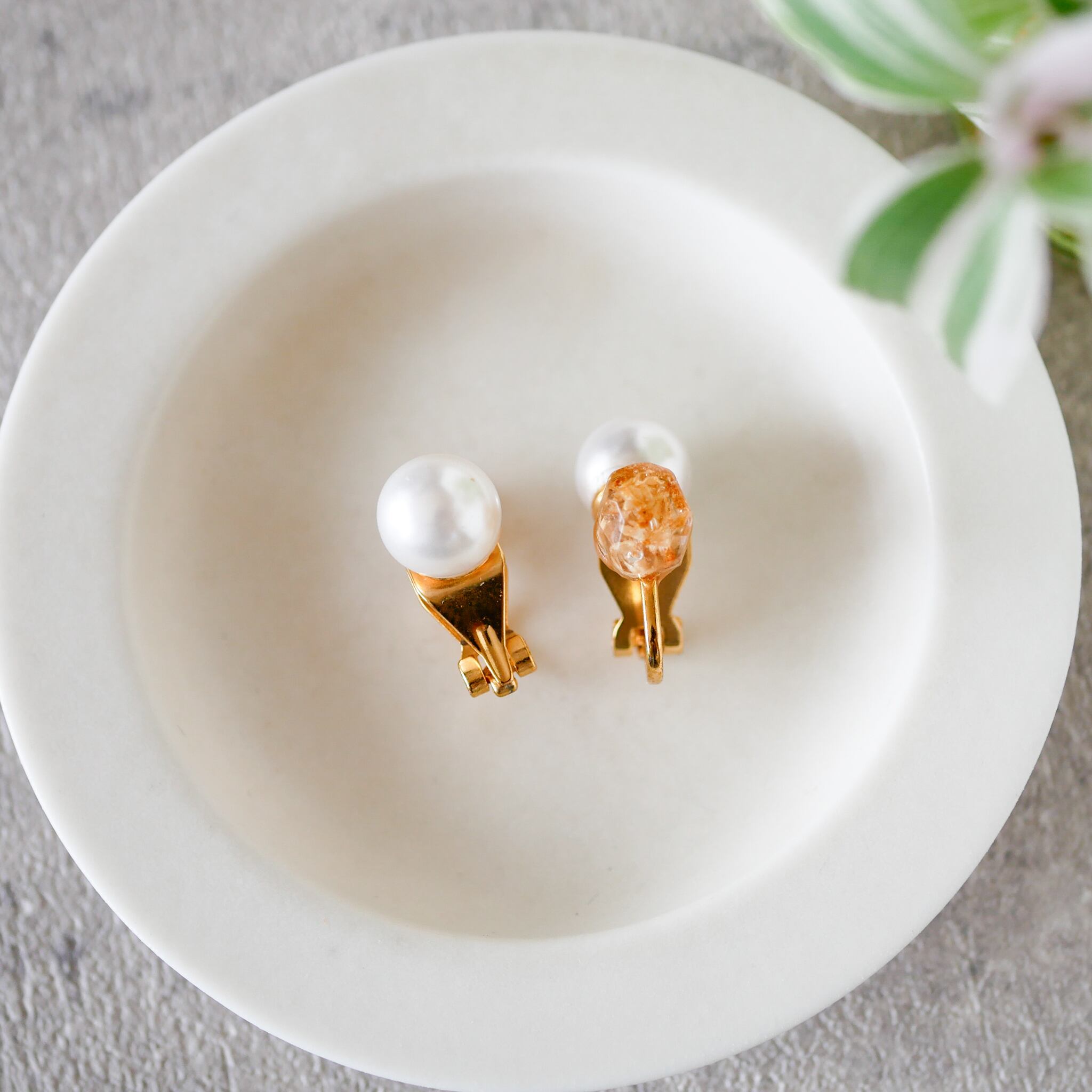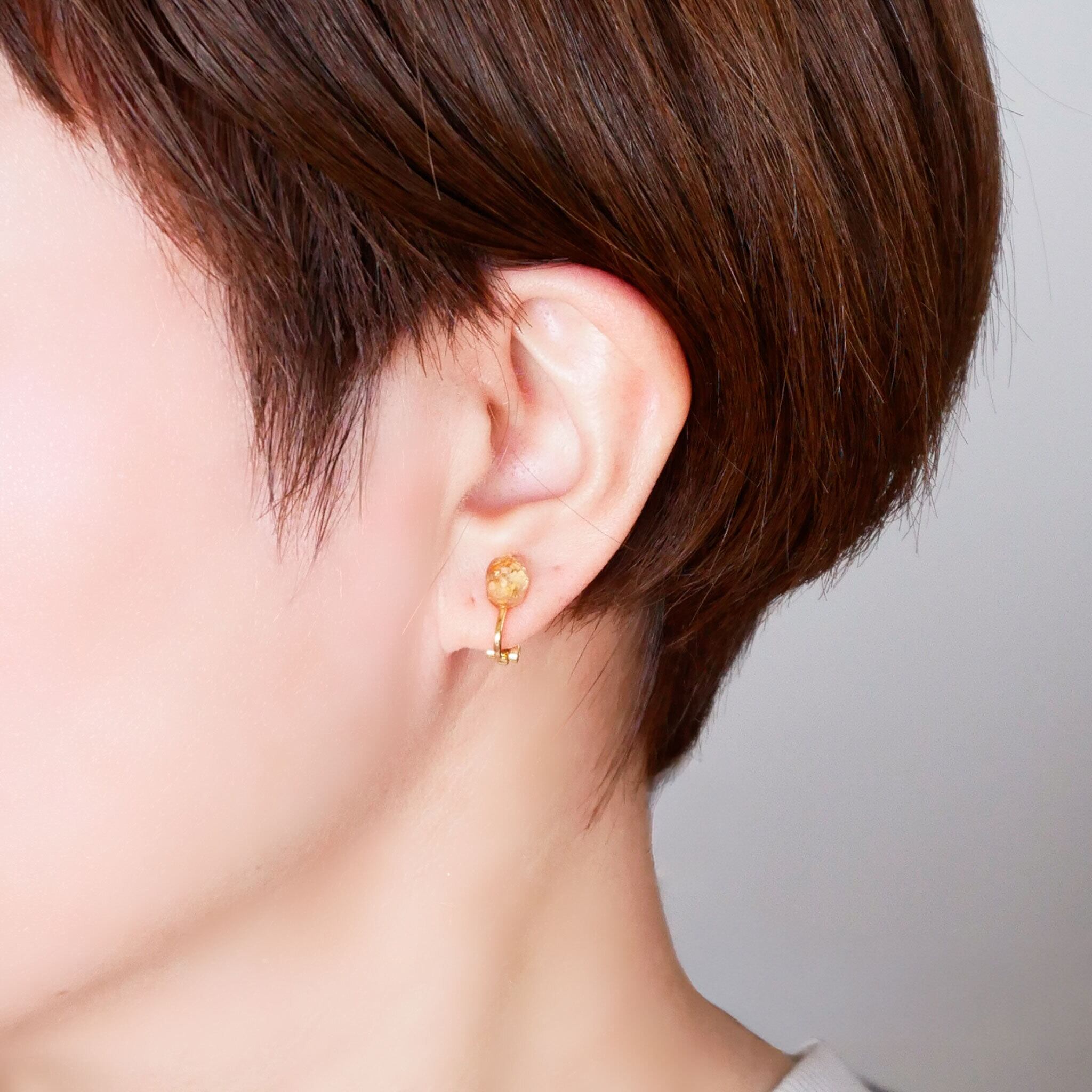 金具の両面にパーツが付いている2wayタイプで、耳たぶに挟むタイプのクリップ式イヤリング。