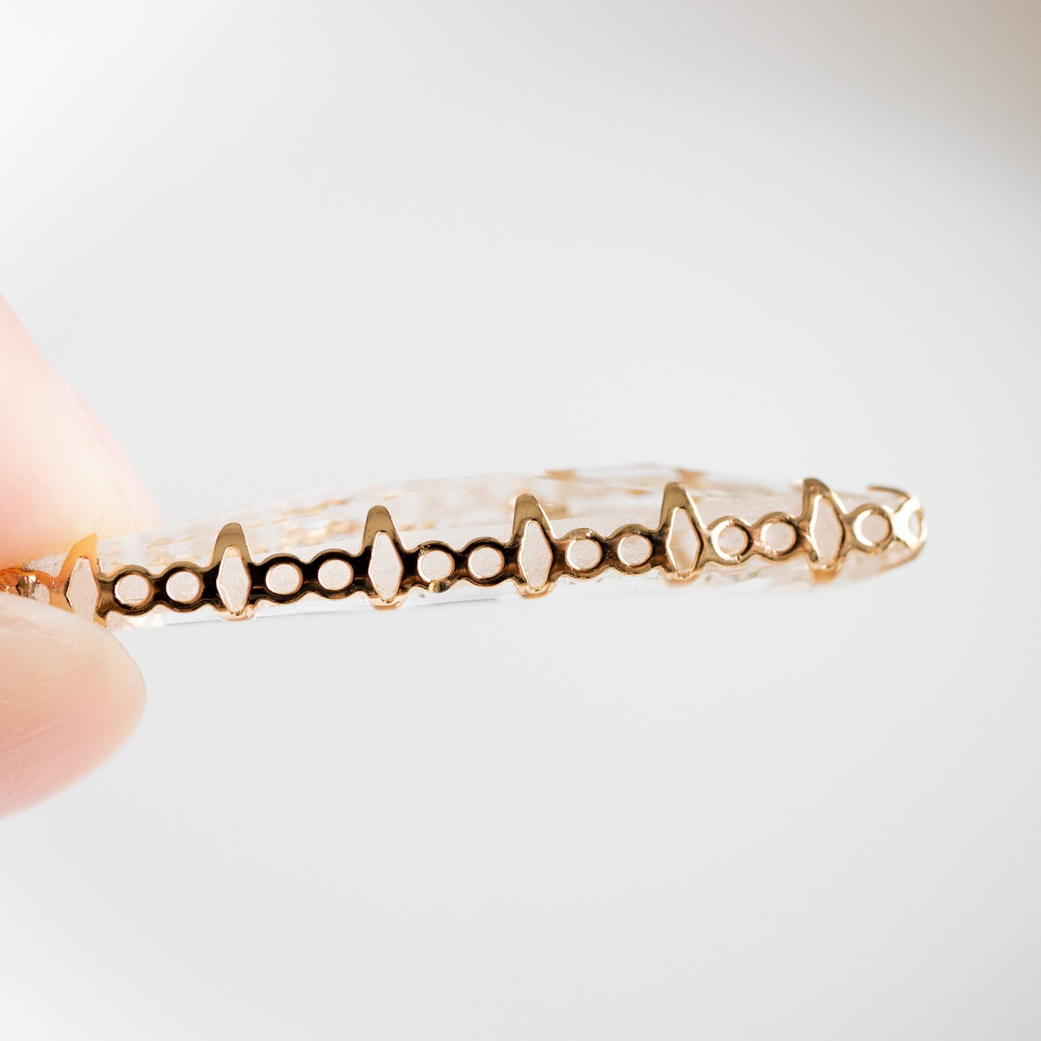 クリスタルパーツの表面はダイヤ柄のカットが入っていて、ゴールドの枠も飾りの様になってとても綺麗です。