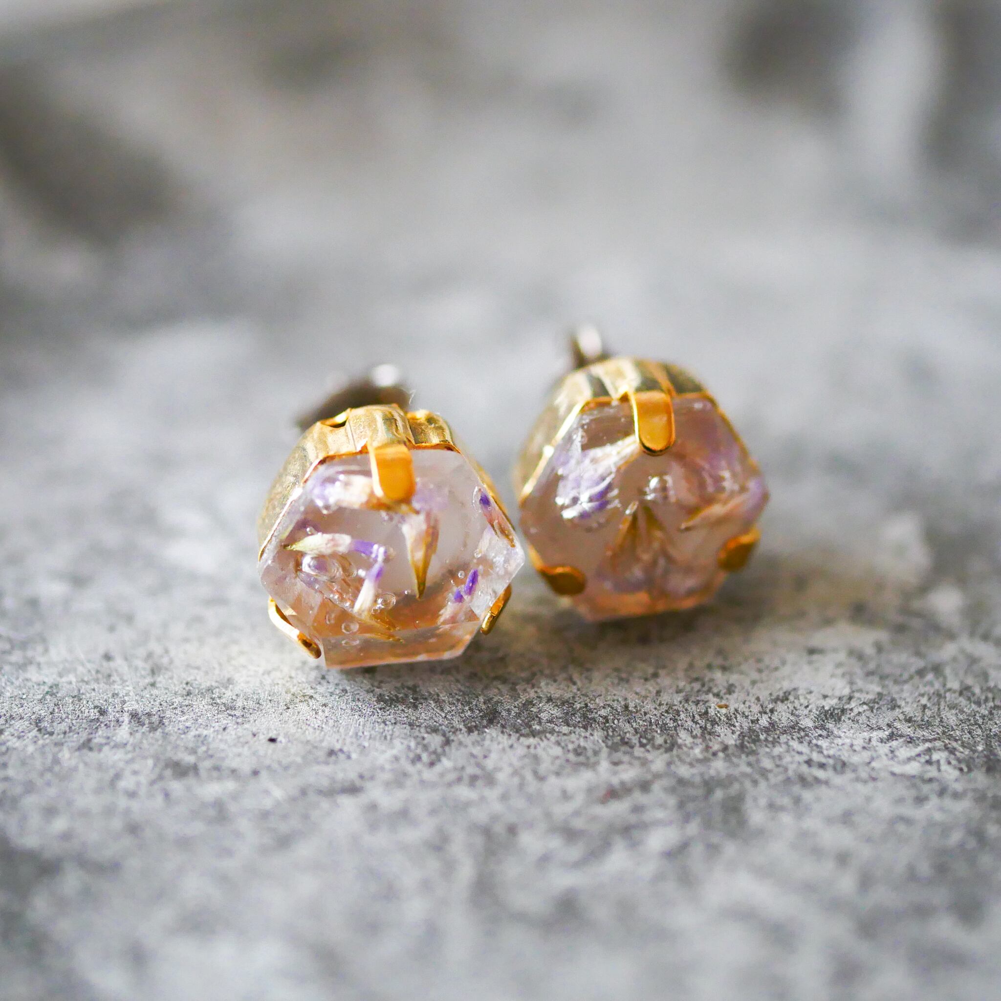 中に閉じ込めたお花は、スターチスのドライフラワー。