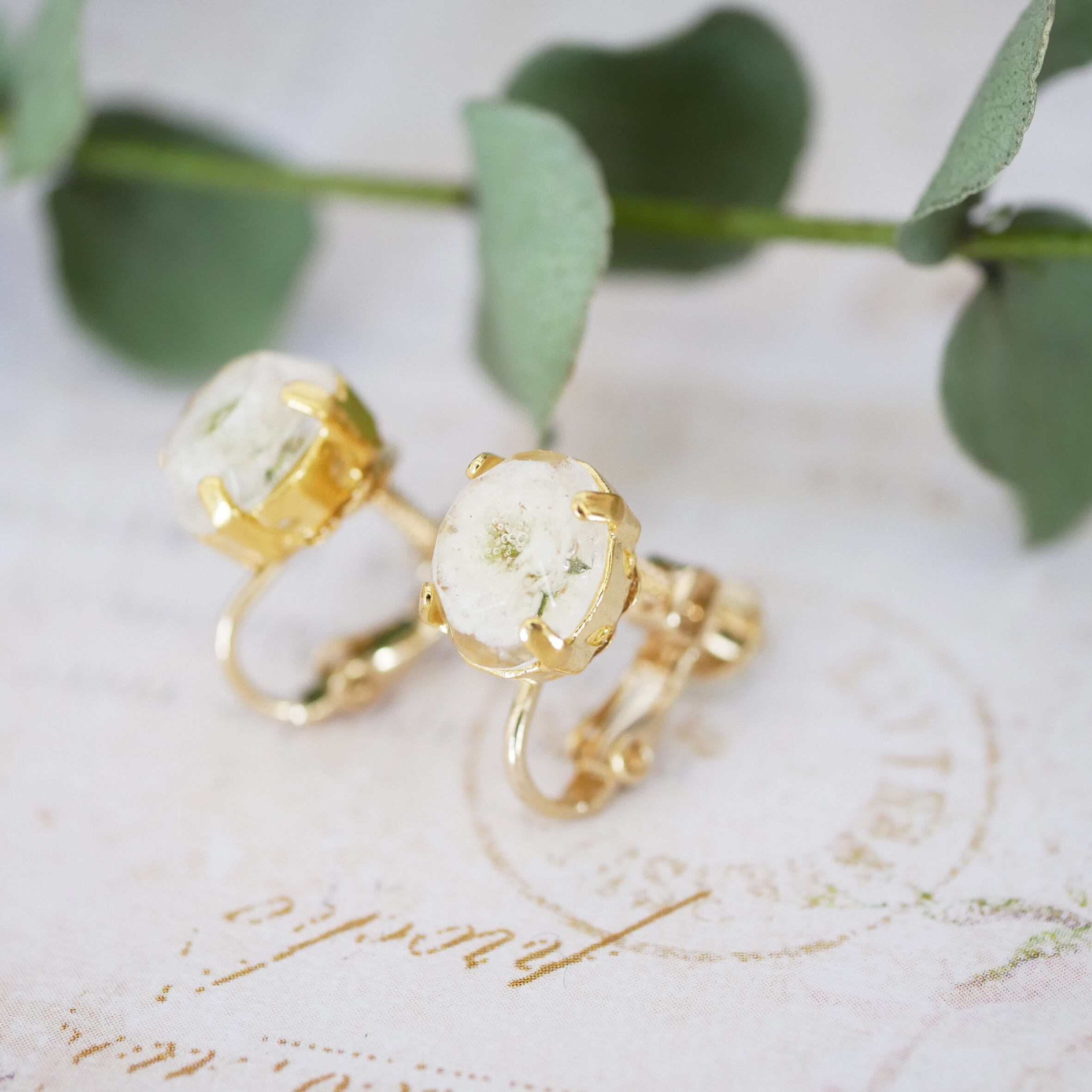 1センチの小さな粒の中に、自家製で作ったかすみ草のドライフラワーを1つとじ込めました。