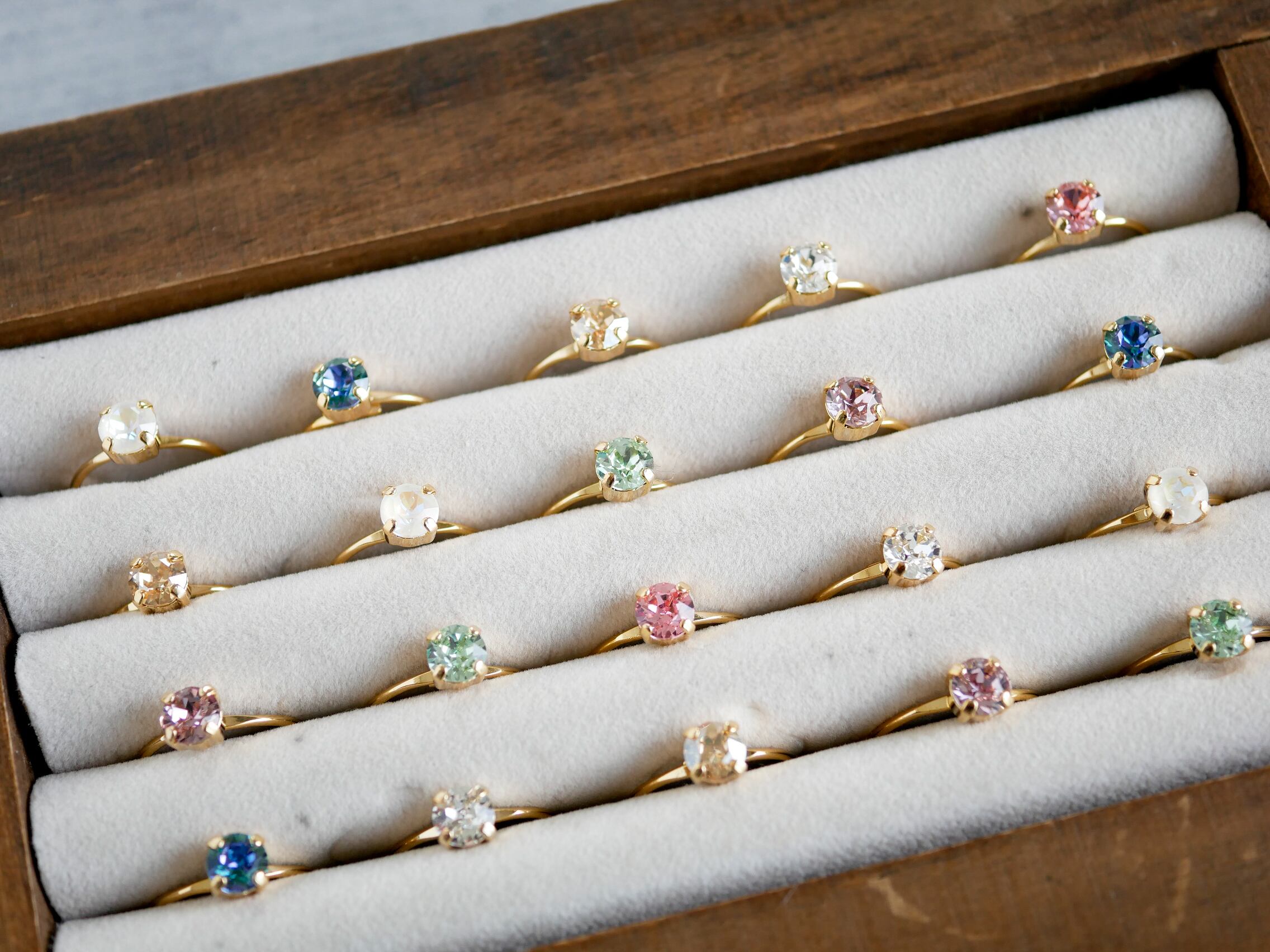 スワロフスキー・クリスタルを使用した、華奢な小粒リング。