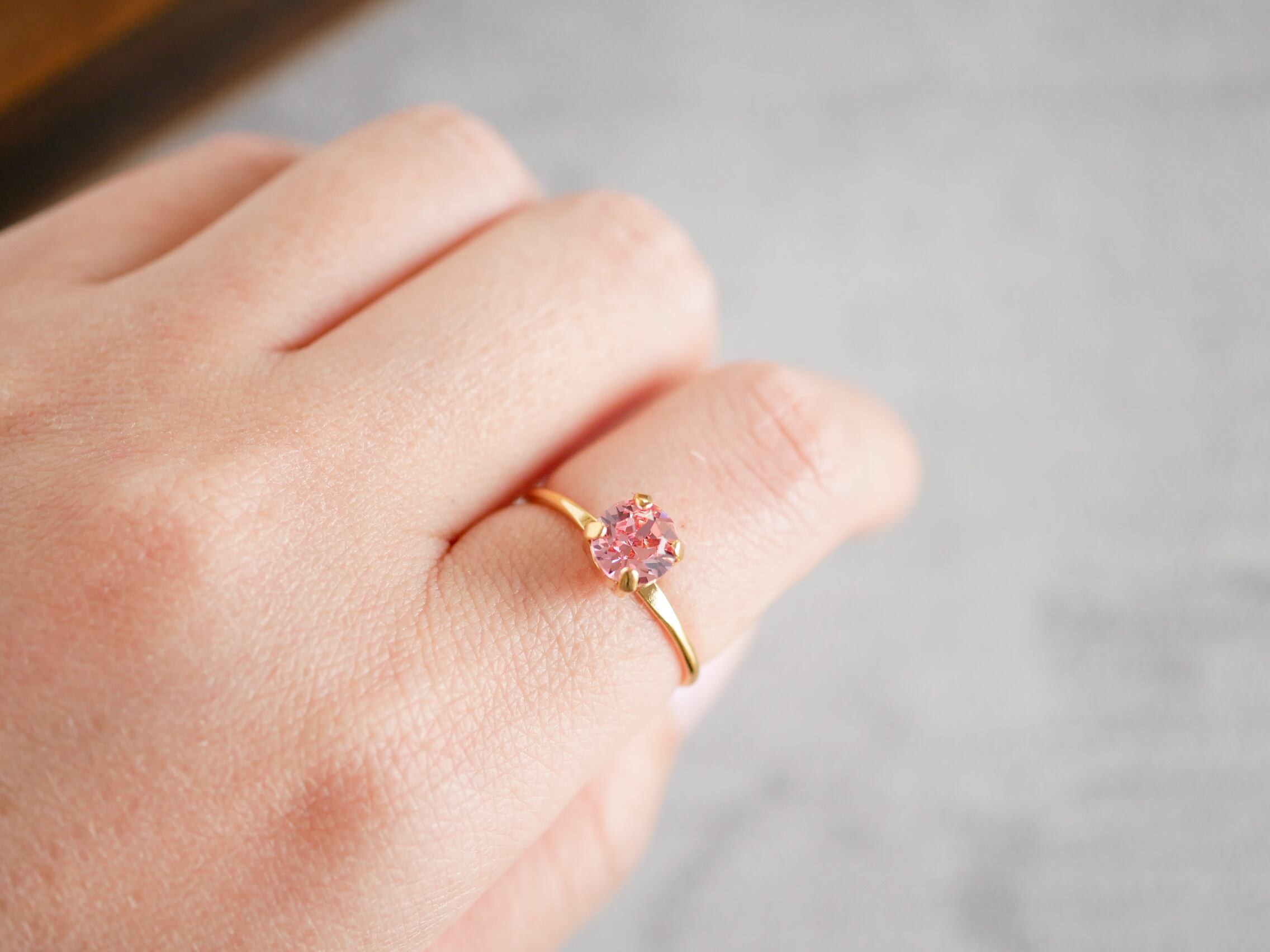 指輪のリング金具は、約1.2ミリの細く華奢なタイプ。