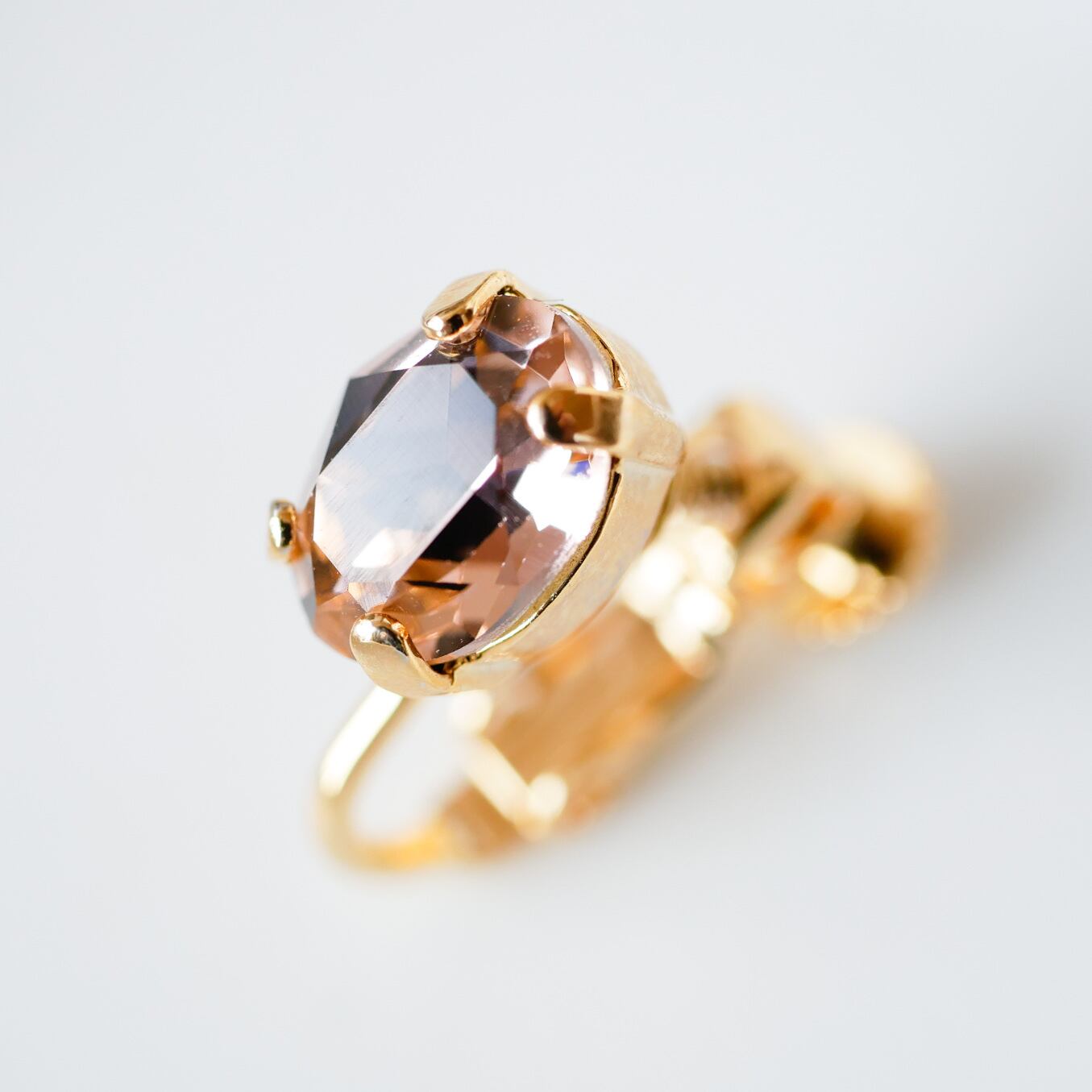 片方は落ち着きあるピンクのビンテージローズカラーのクリスタル。