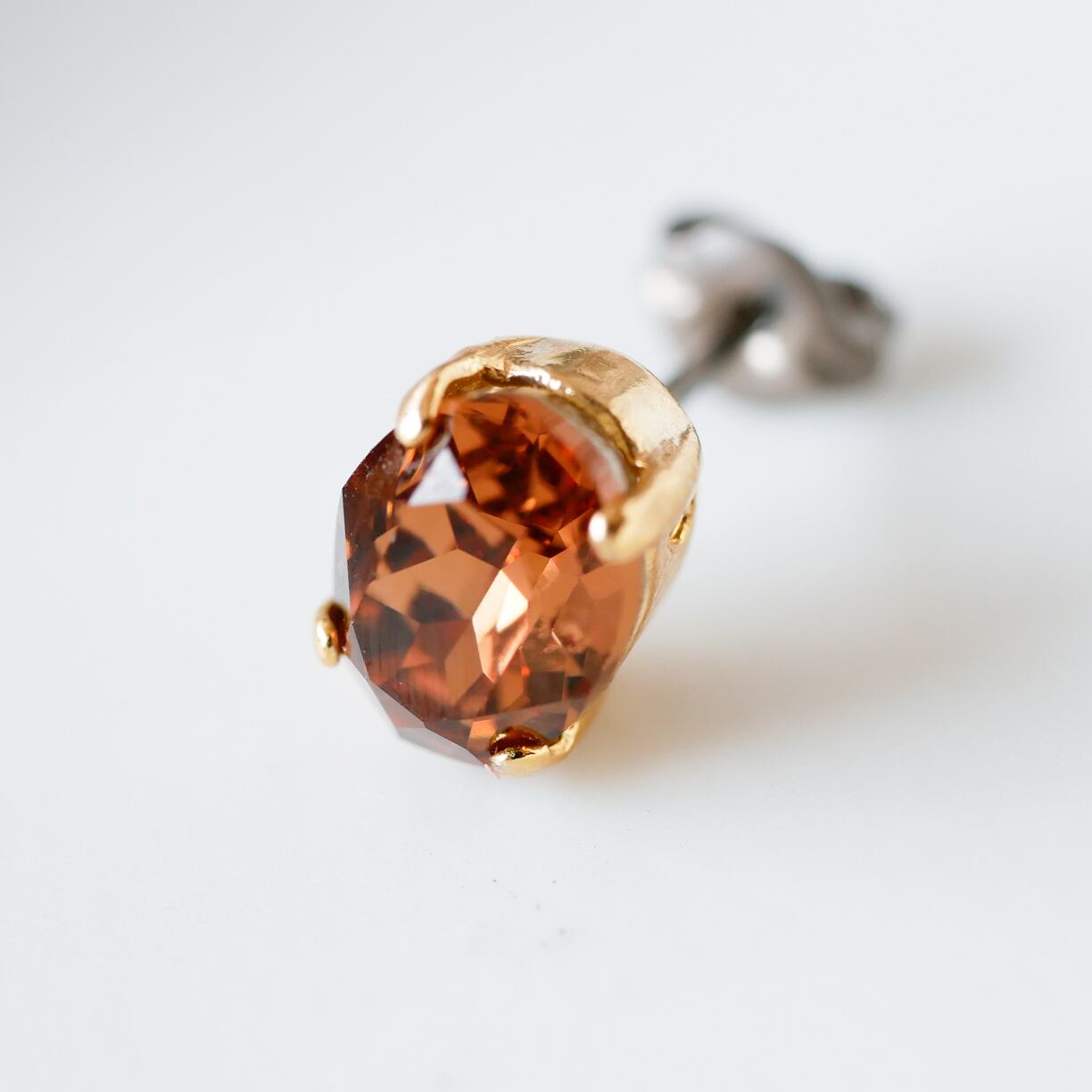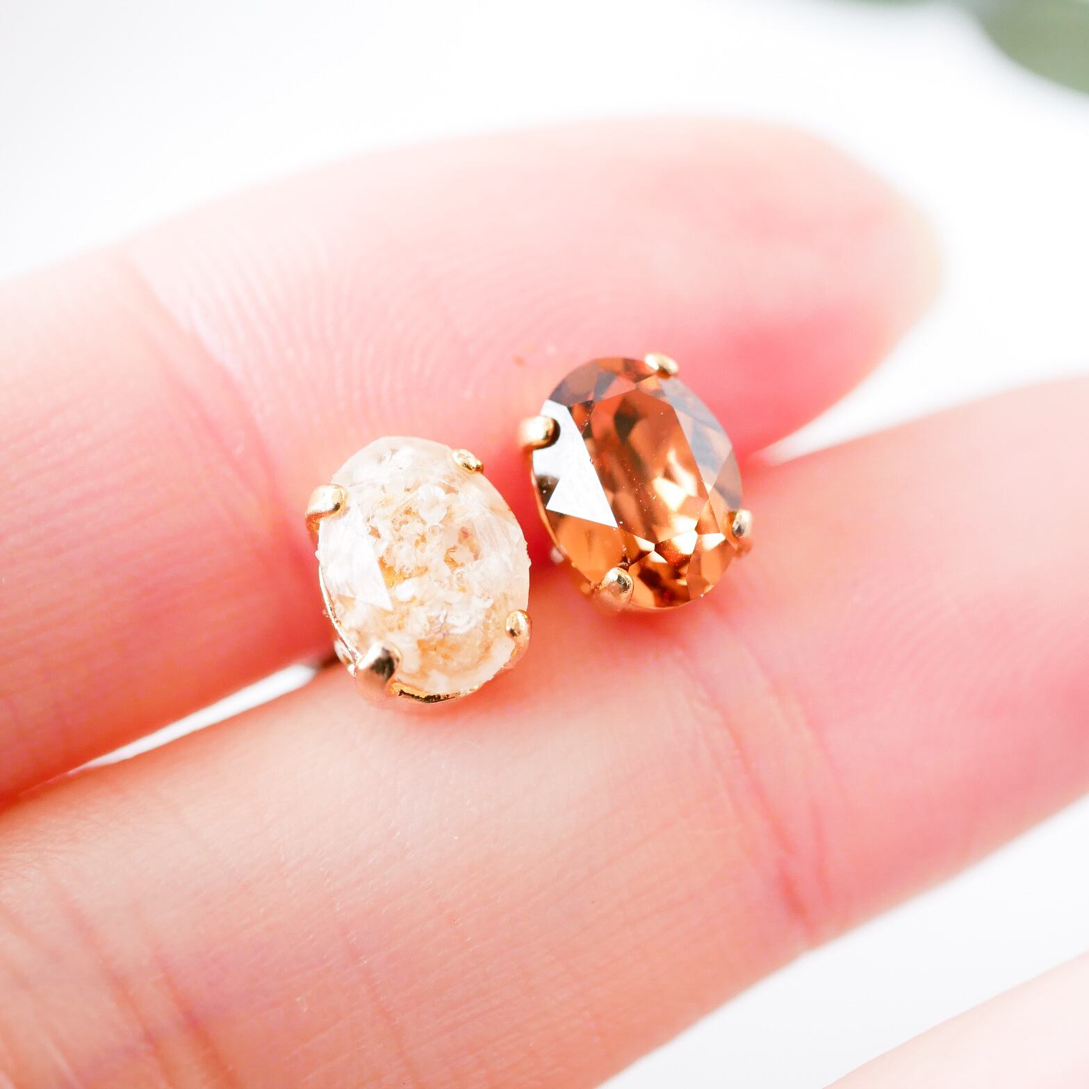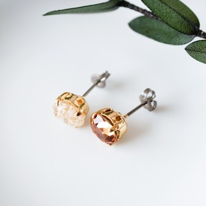 片方は肌なじみの良い優しいブラウンのスモークトパーズカラーのクリスタル。
