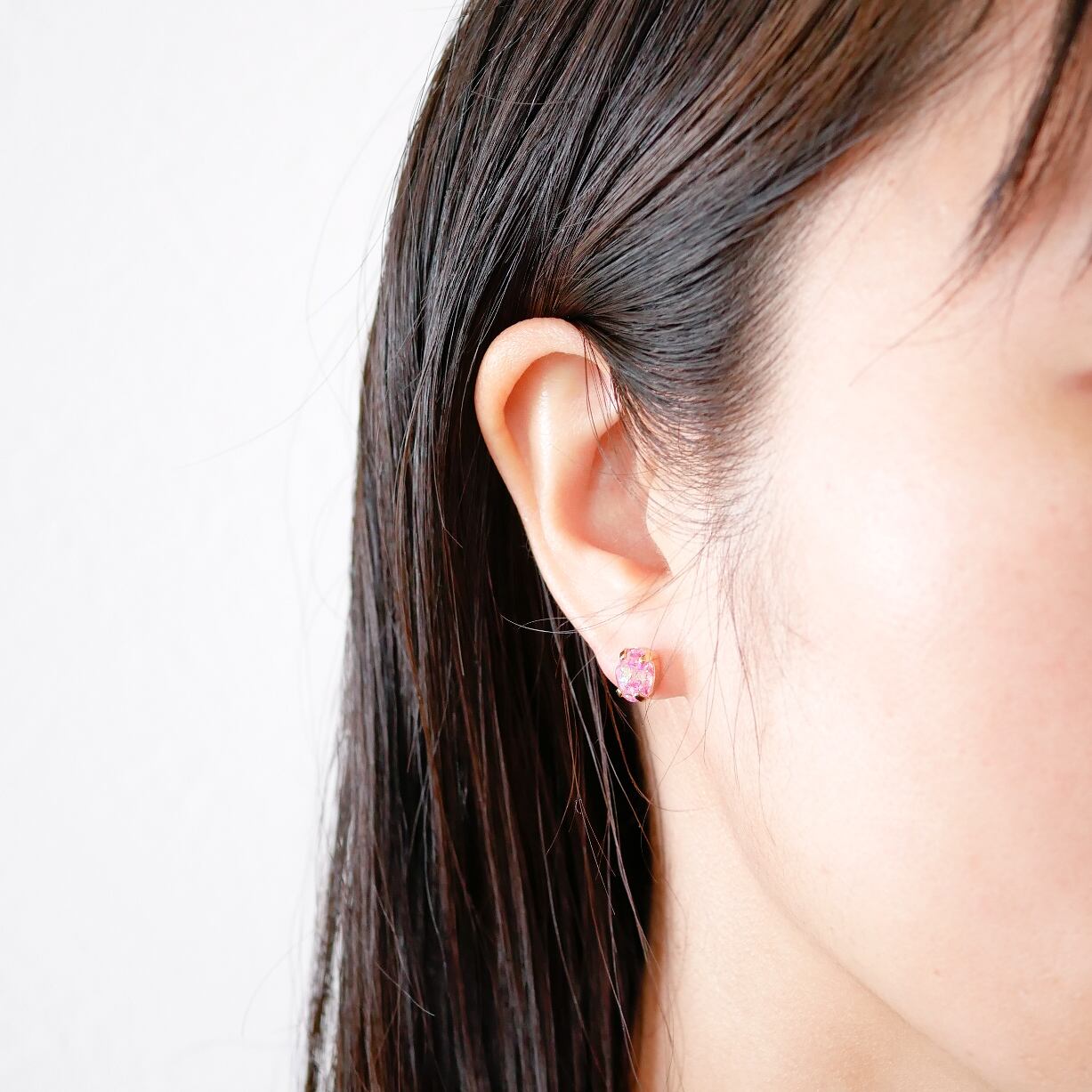 片方は肌なじみの良いグレージュカラーのクリスタル。