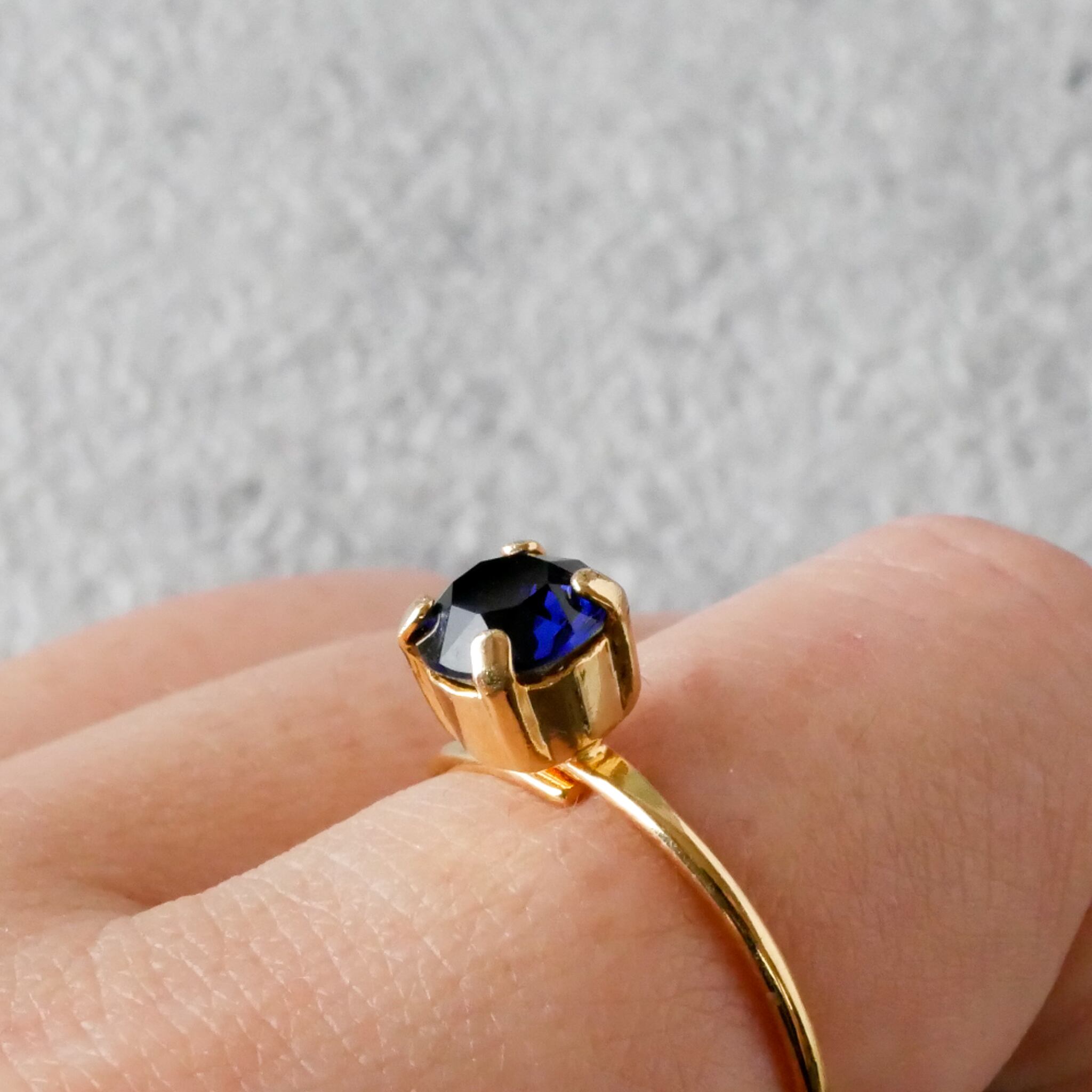スワロフスキー・クリスタル 華奢なシンプル リング(10号フリーサイズ/ダークインディゴ)
