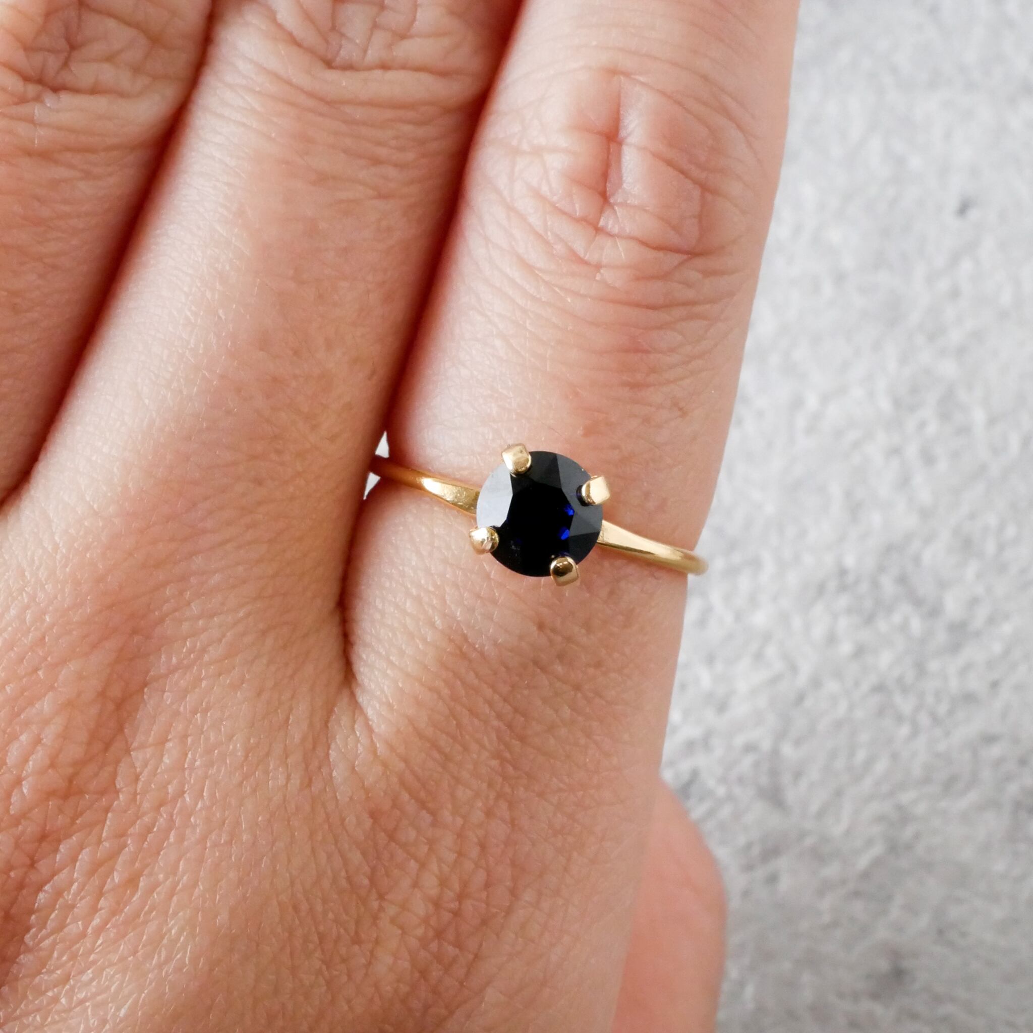 正面からまっすぐ見ると、深い紺色ですが、少し角度を変えると光を反射し透明感あるブルーの色が垣間見れるブルーカラー。黒に近い紺色から、透明感あるブルーまで角度によって色合いが変わります。深みのある色とゴールドの金具の相性も良く、ハッキリとした引き締まる色なので、淡水パールやボリュームあるリングとの重ね付けなどにもおすすめです。