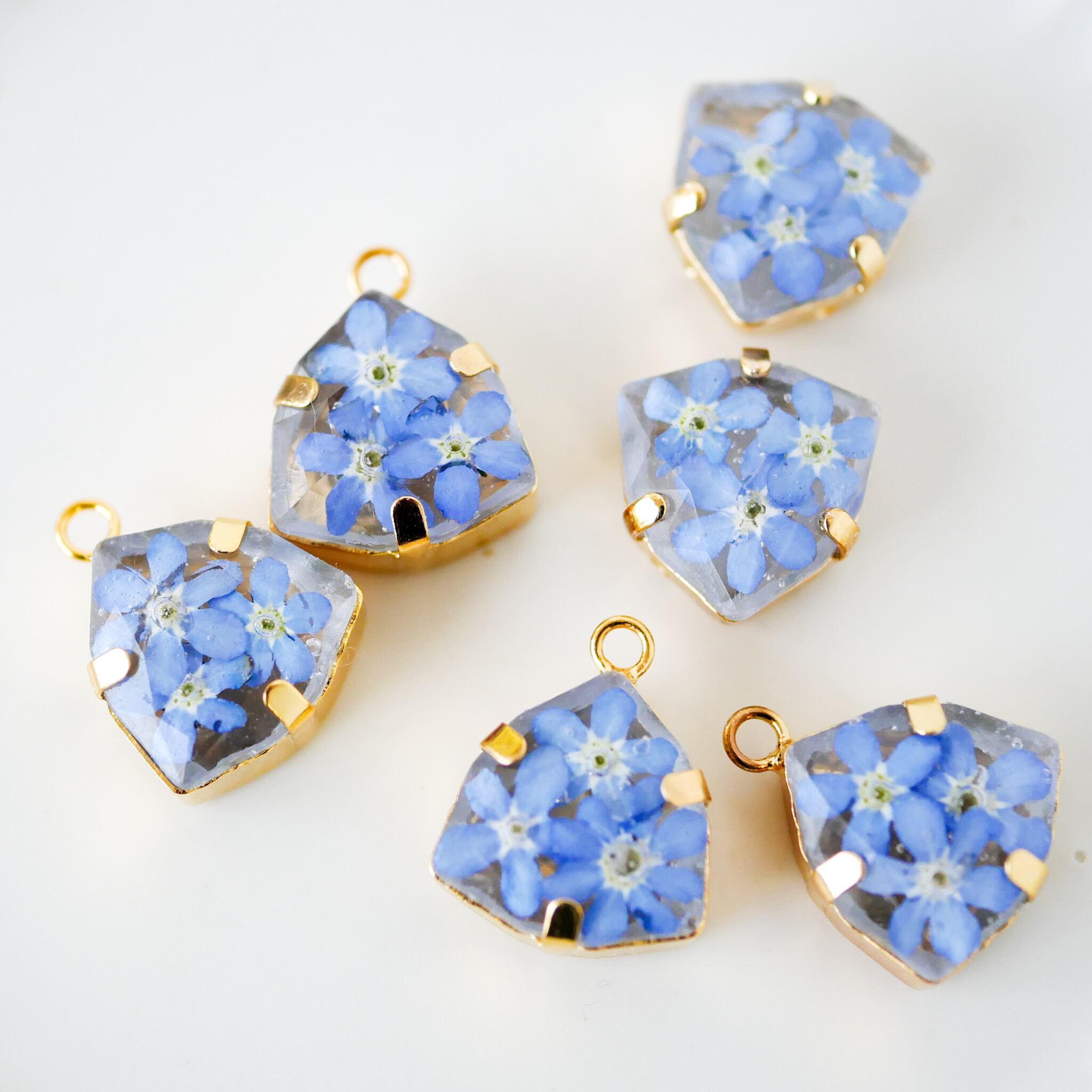 花びらは、忘れな草のお花をドライフラワーにしました。