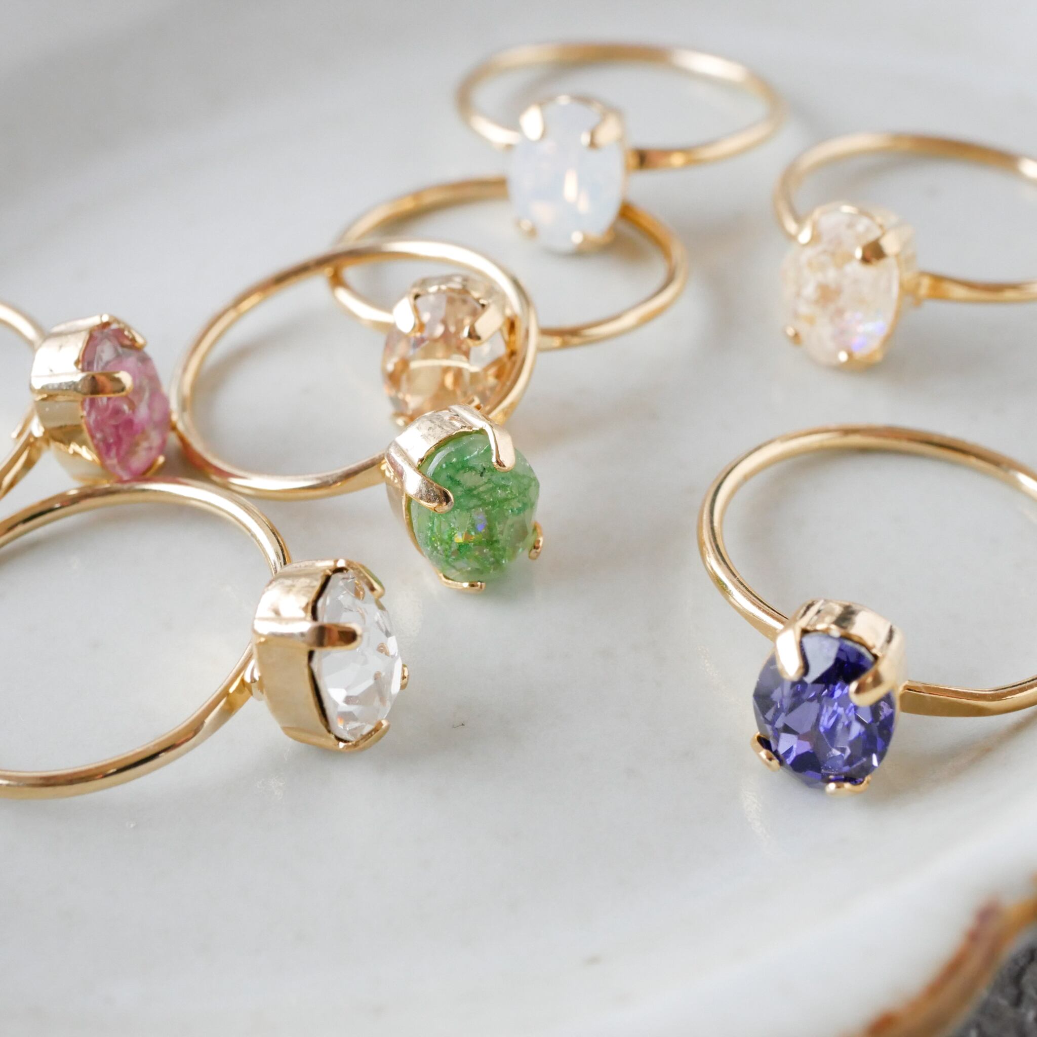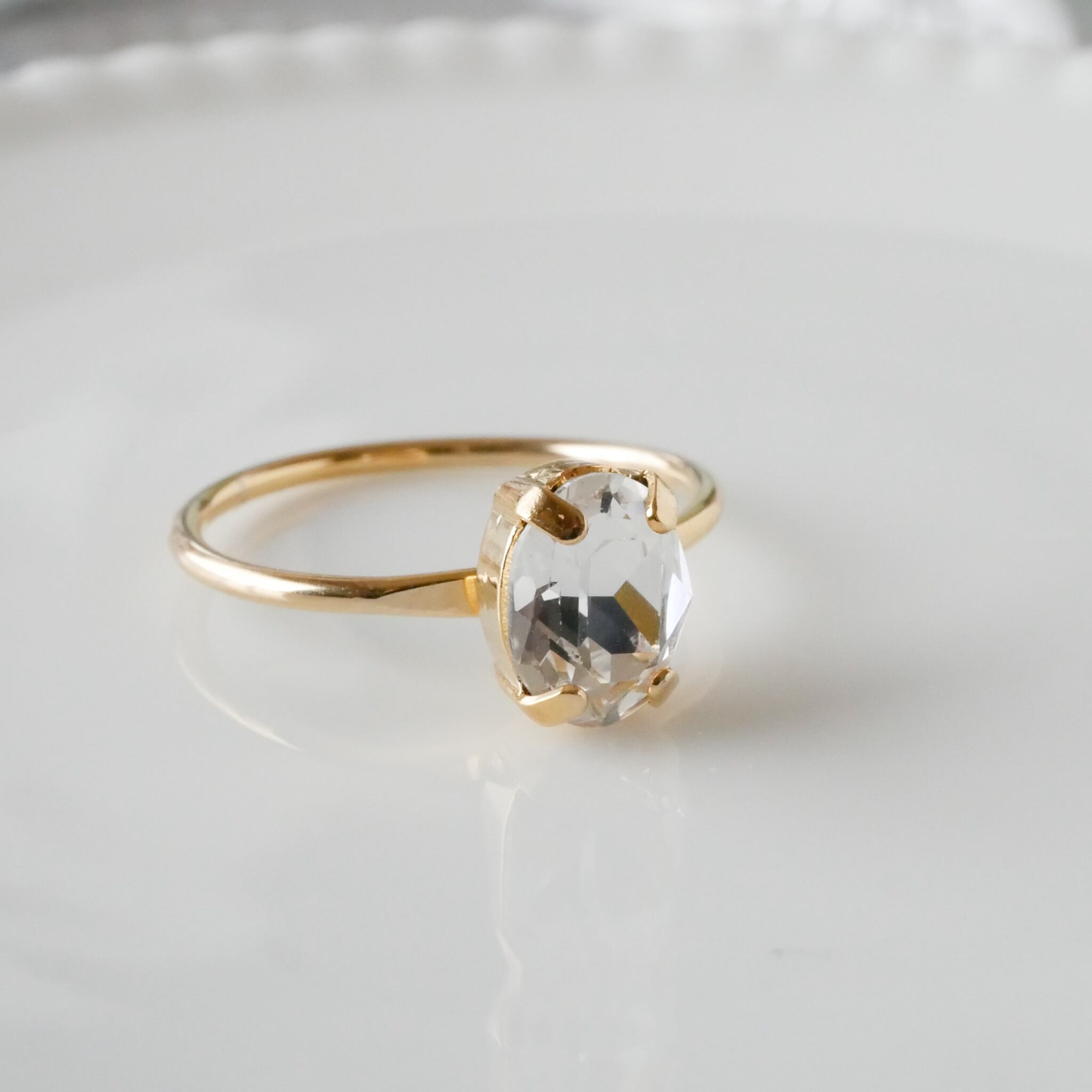 スワロフスキー・クリスタルを使用した、華奢な小粒のオーバル型リング。