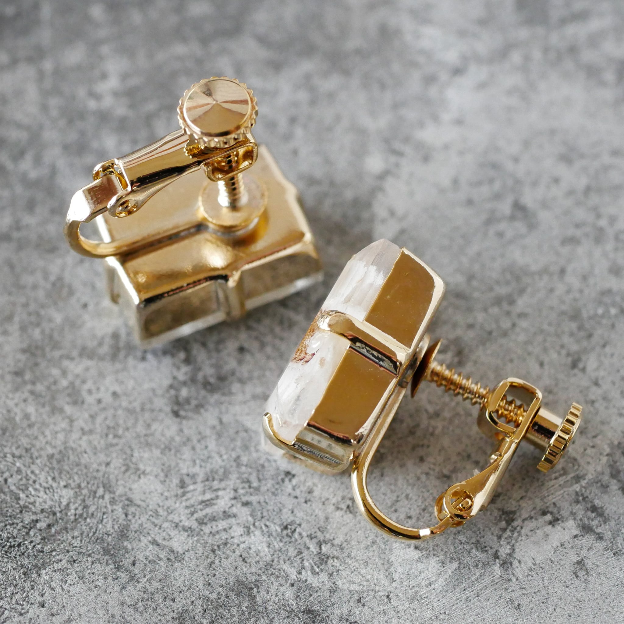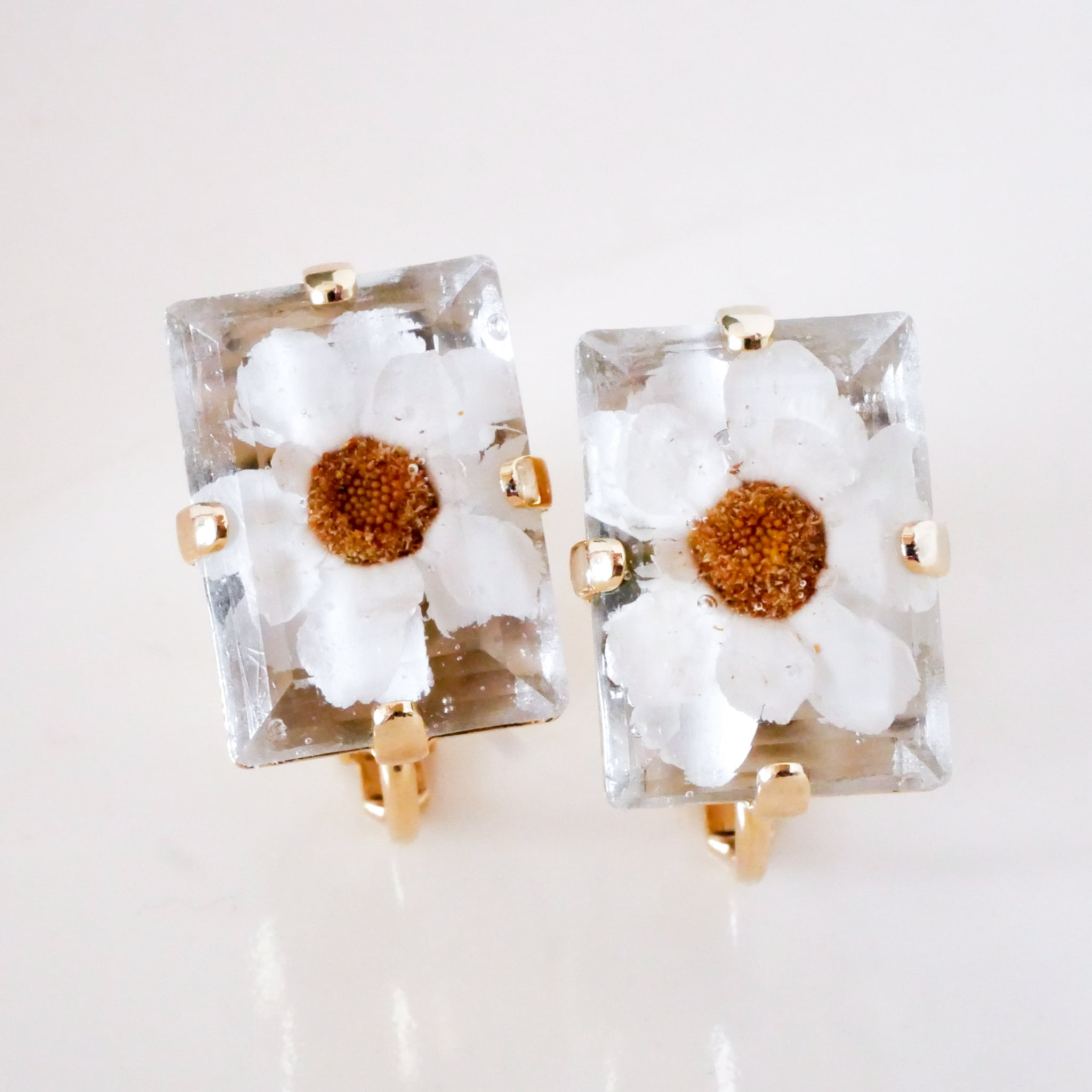 デイジーのお花入り/ドライフラワーイヤリング/レクタング・長方形シリーズ