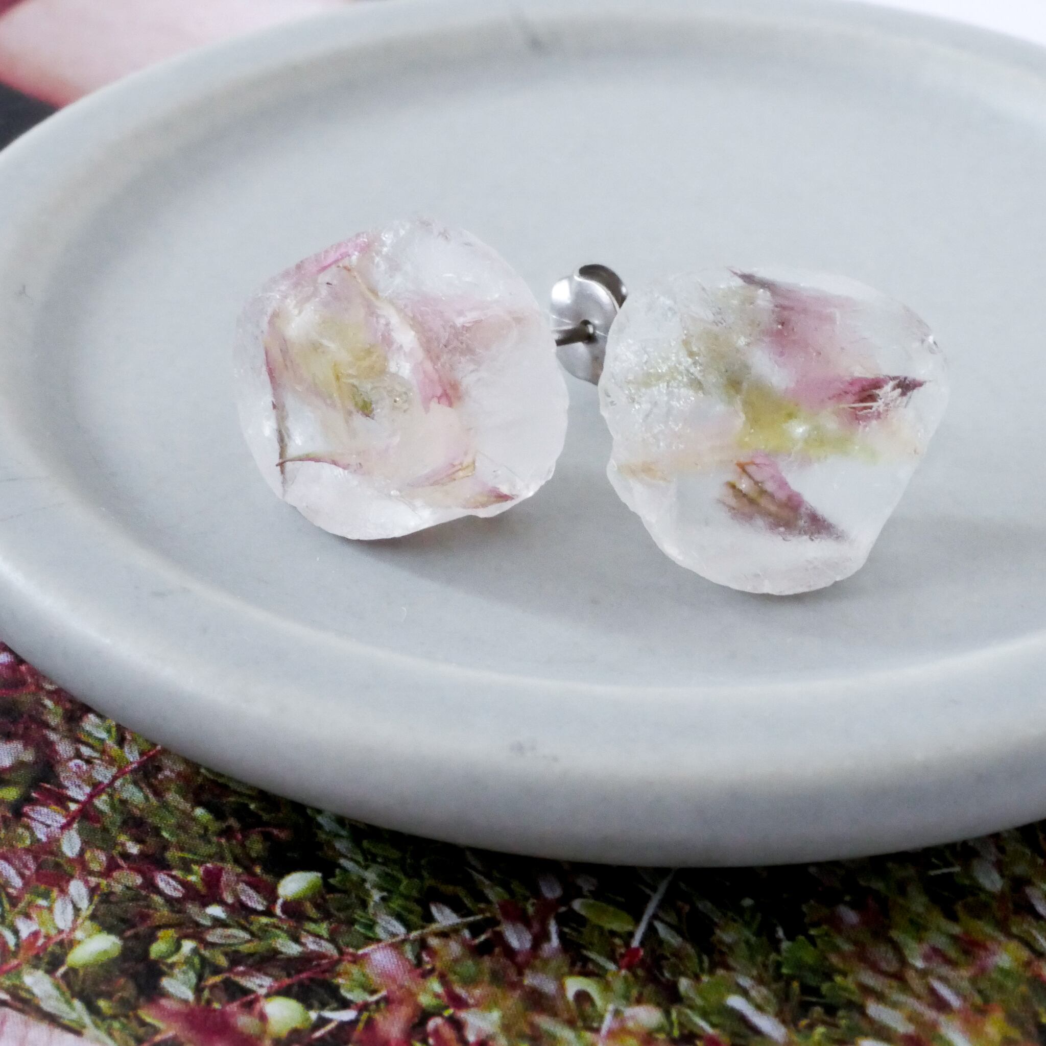 ドライフラワーを閉じ込めた氷砂糖ピアス/アストランティア
