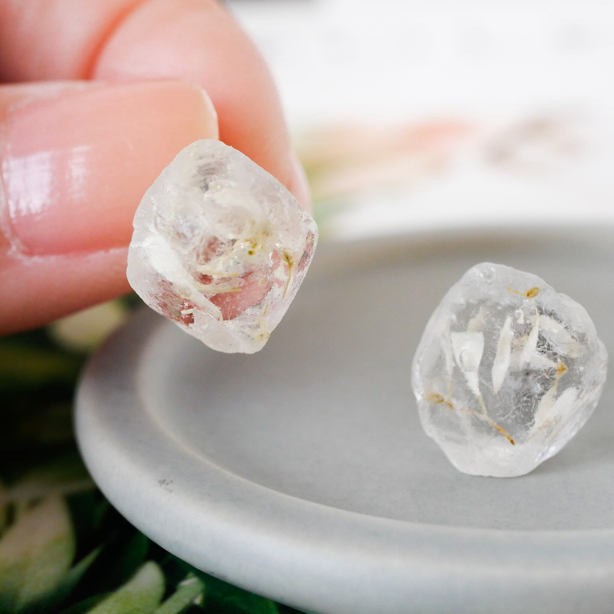 氷砂糖のようなマットな質感がとてもお洒落。透明な部分と半透明な部分があり、花びらが透けて見えます。