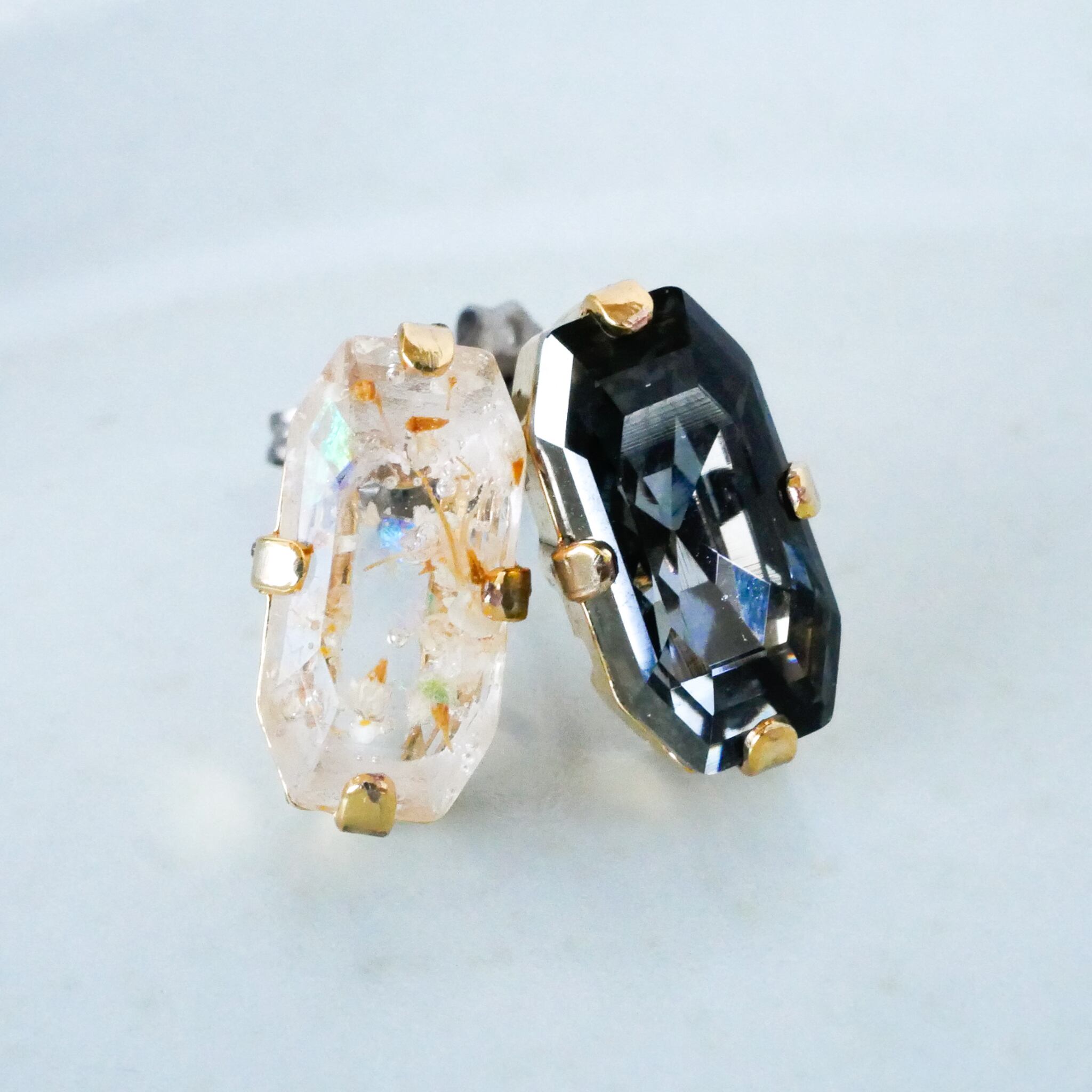 片方は、ドライフラワーを閉じ込め、もう片方には、オーストリア産高級ガラスクリスタルを使用しています。