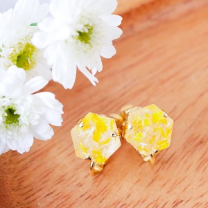 六角形のビジュー型に、本物のお花を閉じ込めたドライフラワーのイヤリング。