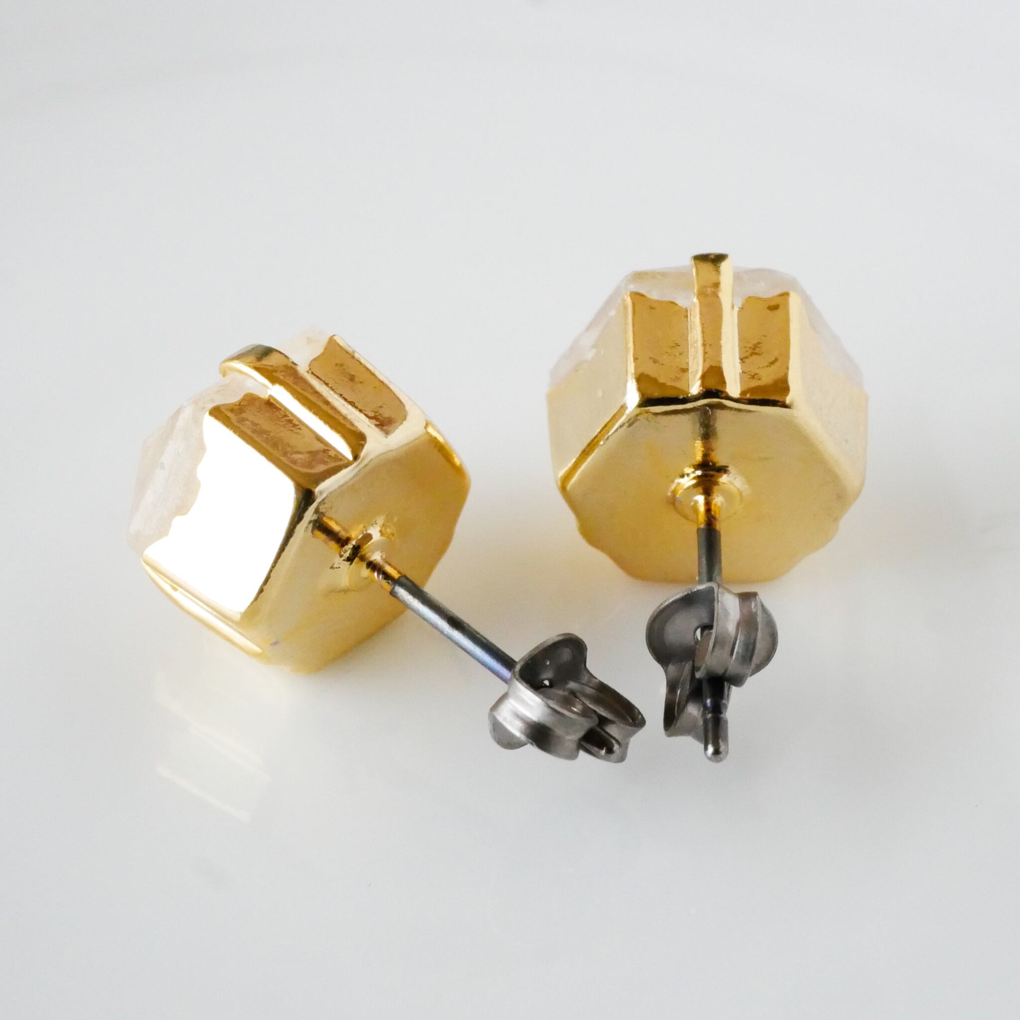 六角形のビジュー型に、本物のお花を閉じ込めたドライフラワーのピアス。