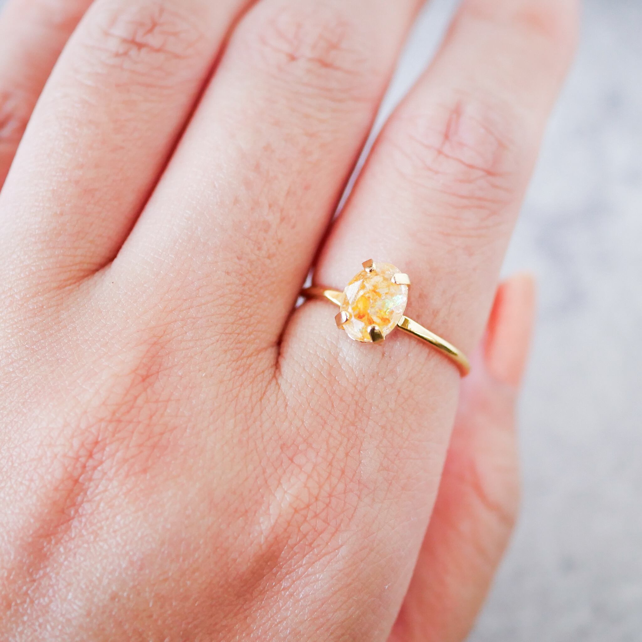 本物の金木犀をドライフラワーにして作った、オーバル型の小粒リング。